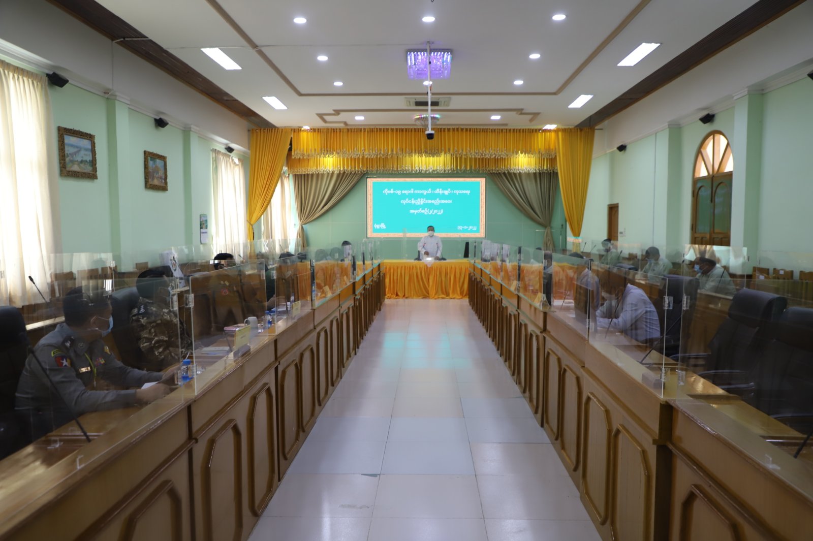 ဆက်လက်၍ နာဂကိုယ်ပိုင်အုပ်ချုပ်ခွင့်ရဒေသ ဦးစီးအဖွဲ့ ဥက္ကဌ ဦးထွန်းထွန်းဝင်းက ဖွံ့ဖြိုးရေးလုပ်ငန်းများနှင့် ဒေသတည်ငြိမ်အေးချမ်းရေး လုပ်ငန်းများဆောင်ရွက်နေမှု အခြေအနေများနှင့် ပတ်သက်၍ ရှင်းလင်းတင်ပြသည်။