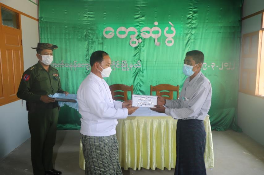 ဝန်ကြီးချုပ် ဦးမြတ်ကျော်၊ အနောက်မြောက်တိုင်းစစ်ဌာနချုပ်တိုင်းမှူး ဗိုလ်မှူးချုပ် သန်းထိုက်၊ ချောင်းဦးမြို့နယ်၊ ကံကြီးကုန်းကျေးရွာ ဒေသခံပြည်သူများအား ထောက်ပံ့ငွေ၊ အသုံးဆောင်ပစ္စည်းများ၊ စားသောက်ဖွယ်ရာများ ထောက်ပံ့ပေးအပ်