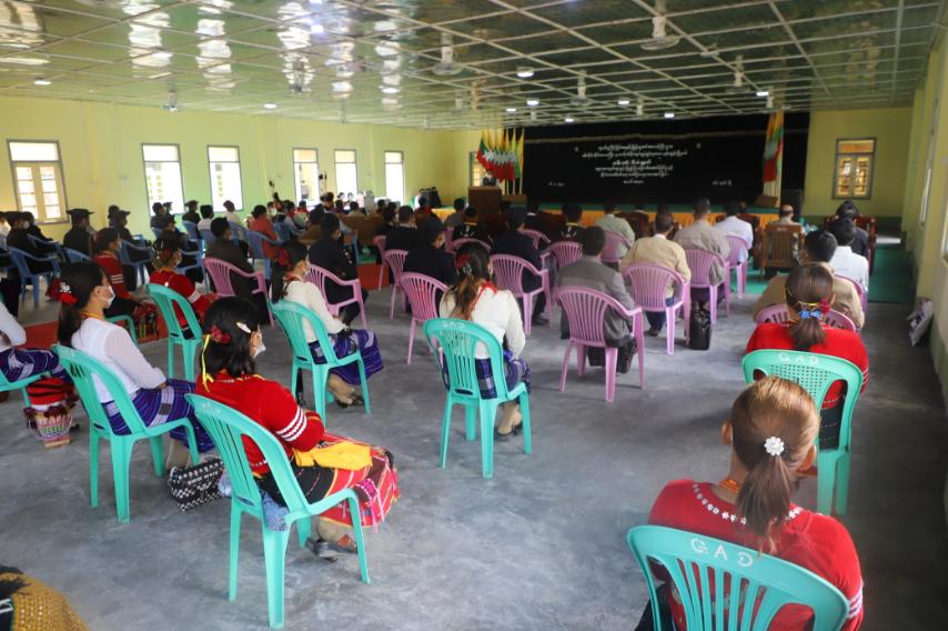 ဆက်လက်၍ နာဂကိုယ်ပိုင်အုပ်ချုပ်ခွင့်ရဒေသ ဦးစီးအဖွဲ့ ဥက္ကဌ ဦးထွန်းထွန်းဝင်းက ဖွံ့ဖြိုးရေးလုပ်ငန်းများနှင့် ဒေသတည်ငြိမ်အေးချမ်းရေး လုပ်ငန်းများဆောင်ရွက်နေမှု အခြေအနေများနှင့် ပတ်သက်၍ ရှင်းလင်းတင်ပြသည်။