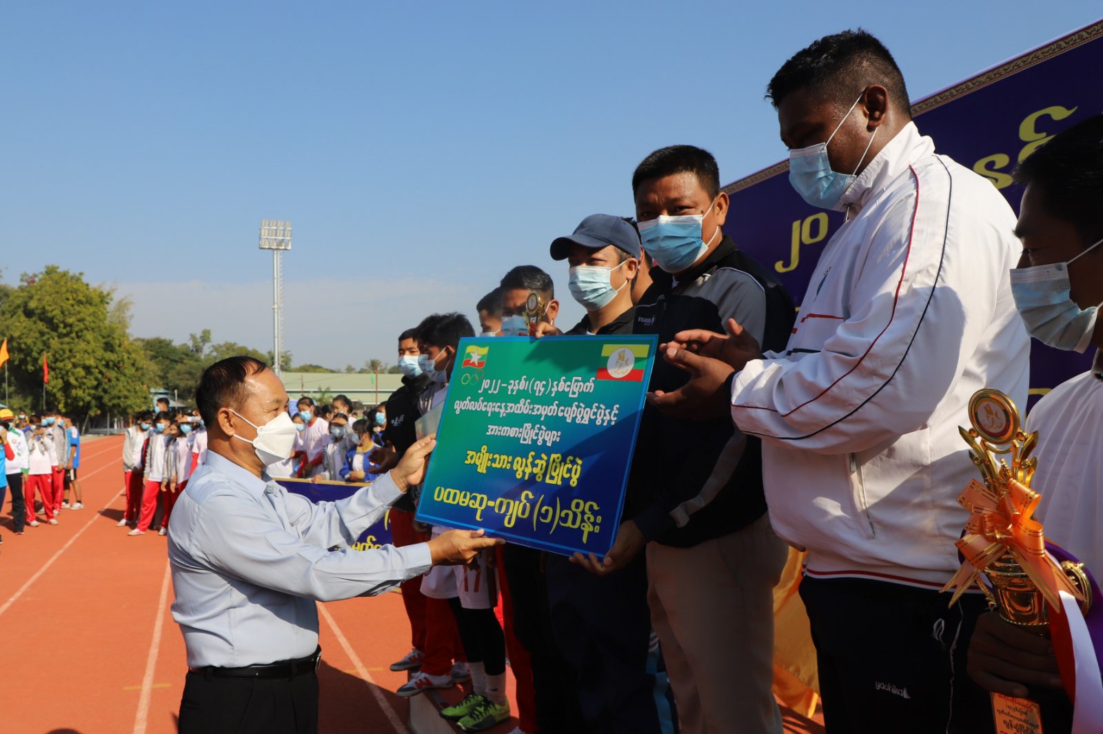 ရှေးဦးစွာ တိုင်းဒေသကြီး ဝန်ကြီးချုပ် ဦးမြတ်ကျော်က အမှာစကားပြောကြားပြီး စစ်ကိုင်းတိုင်းဒေသကြီး ပြေးခုန်ပစ်အသင်း အုပ်ချုပ်သူမှ ပြိုင်ပွဲဝင်ရောက်ယှဉ်ပြိုင်မည့် အခြေအနေများနှင့် ပတ်သက်၍ ရှင်းလင်းတင်ပြကာ တိုင်းဒေသကြီး ဝန်ကြီးချုပ် ဦးမြတ်ကျော်က အသင်းအုပ်ချုပ်သူနှင့် တာဝန်ရှိသူများထံ ဂုဏ်ပြုငွေနှင့် အောင်နိုင်ရေး အလံတို့အား ပေးအပ်သည်။